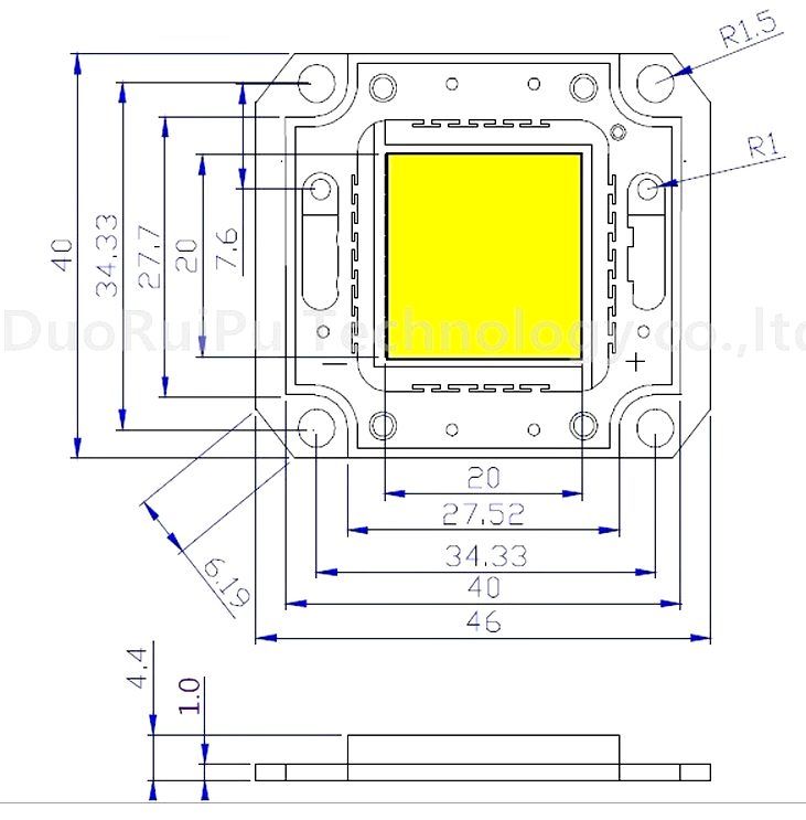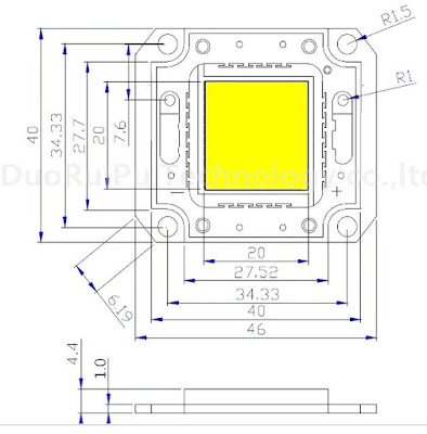 Размер пластины 60*40 мм, толщина 1,5мм., полностью совместимы по крепежным отверстиям со светодиодными стандартными матрицами COB