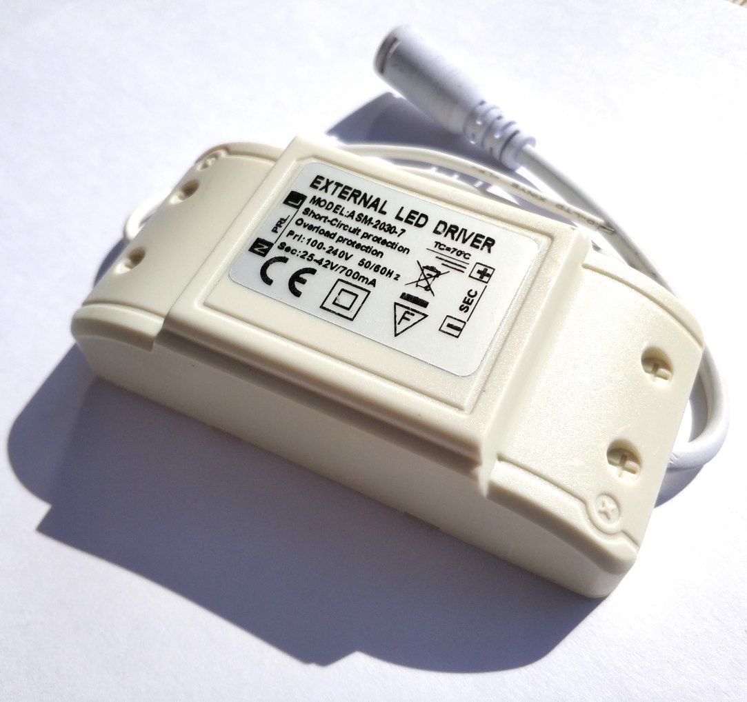 Технические характеристики: 1. Входное напряжение - 100-240V AC 50/60 Гц. 2. Выходное напряжение - 25-42V DC 3. Выходной ток - 700mA 4. Мощность 15-30Вт. 5. Класс защиты IP44 6. Размеры 93х46x28 мм 7. Вес - 73 гр.